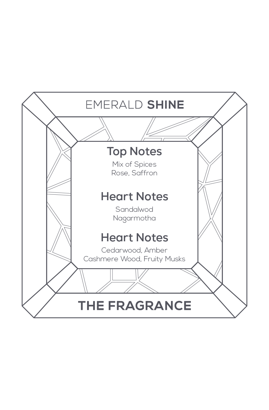 EMERALD SHINE 是一款源自全球的精致东方琥珀香水。卡拉布里亚佛手柑、雅法蜜桔和巴巴多斯葡萄柚的前调开启一段旅程。中调以杜松、小豆蔻和藏红花为特色,并带有一丝佐法尔乳香。基调则以 Nargamotha、愈创木、皮革香调和琥珀为主。体验复杂与奢华。
