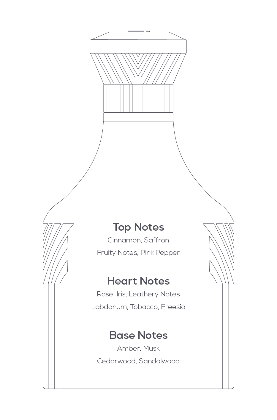 A deep oriental spicy fragrance, with a head of exuberant bergamot, fruity, and spicy notes of Pink Pepper, Saffron, Cinnamon, & Cardamom. The heart is floral and woody, with sweet Freesia, rose, creamy Iris, Labdanum, and dark Tobacco and leather notes. The base of Saphirre Passion is precious, with twin amber and musk, sweet Vanilla and Tonka Beans, and serious Cedarwood and Sandalwood notes.